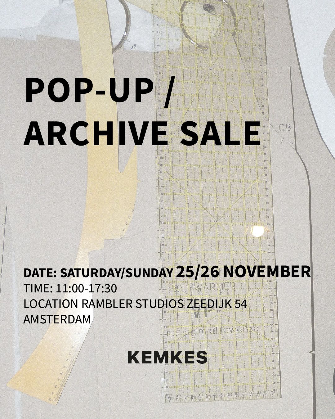 We invite you to celebrate our first year of KEMKES on November 25 & 26 in Amsterdam at Zeedijk 54. We will showcase our latest FW23 collections and sell our archive pieces.