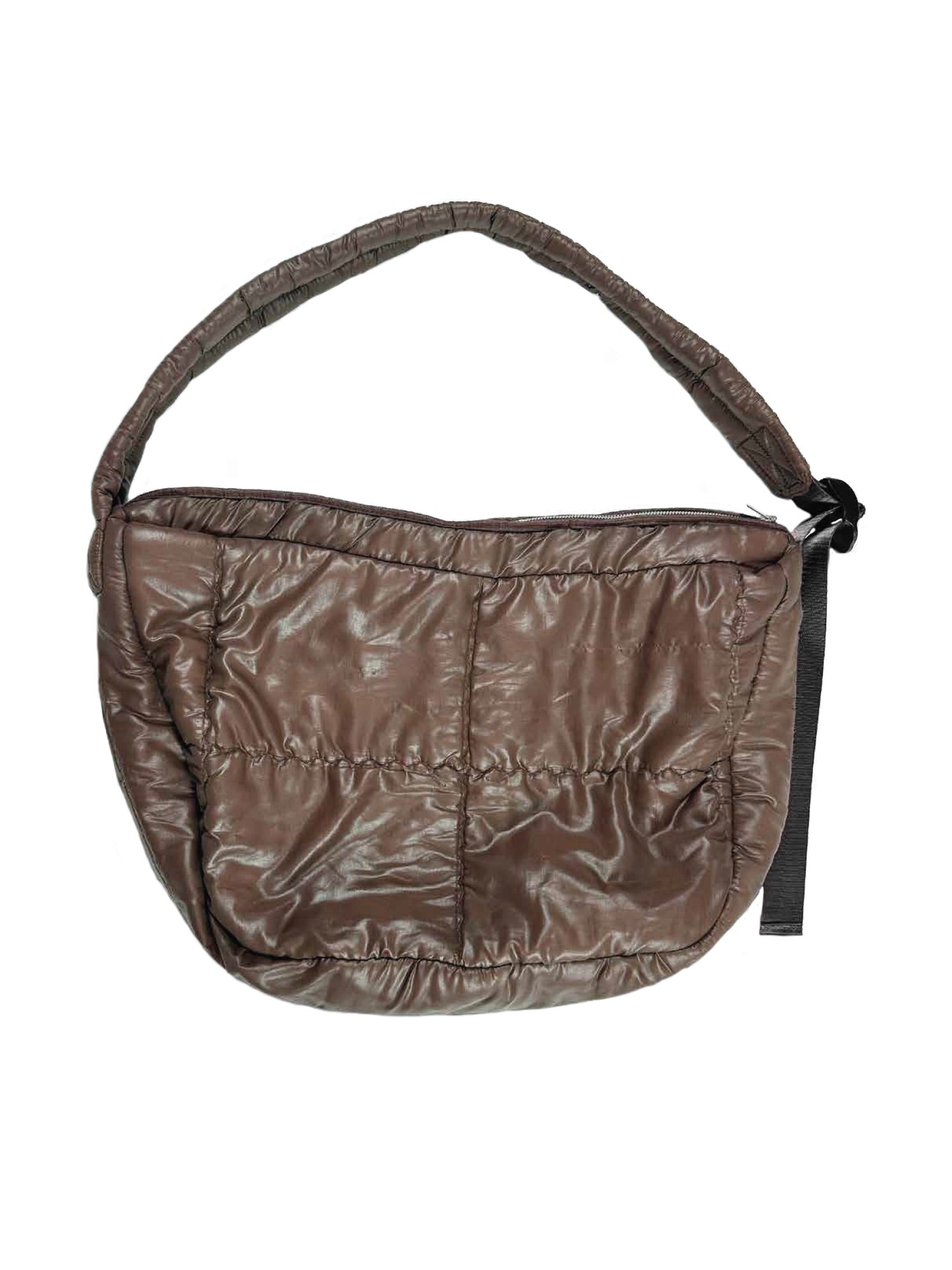 Crafted from repurposed sleeping bags, this durable and lightweight bag is designed to fit your laptop and daily essentials. It features an adjustable, padded strap for comfort, a secure zipper closure, and a sturdy lining made from reclaimed tent materials. Inside, a built-in pocket helps keep your belongings organized—perfect for work, travel, or everyday use.