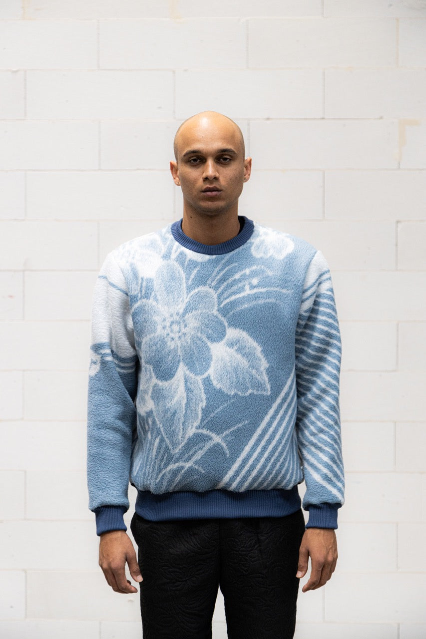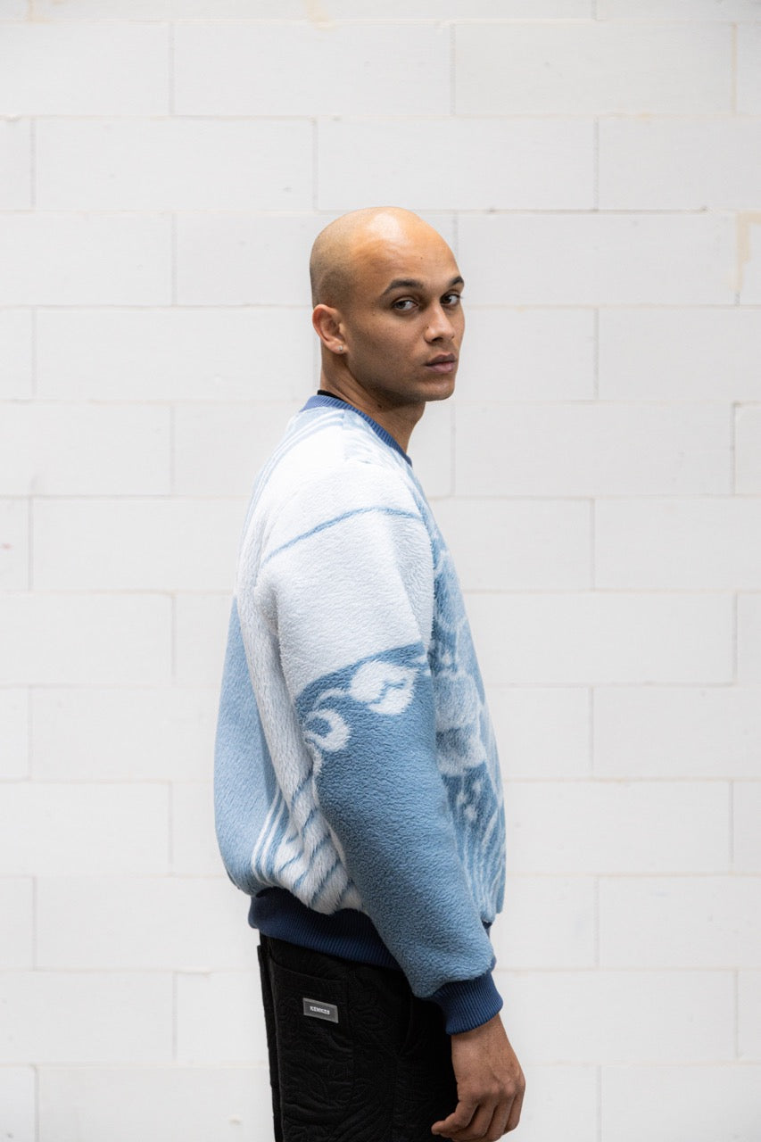 This crewneck is made from a vintage upcycled fleece blanket. It has a relaxed fit. Print may vary.