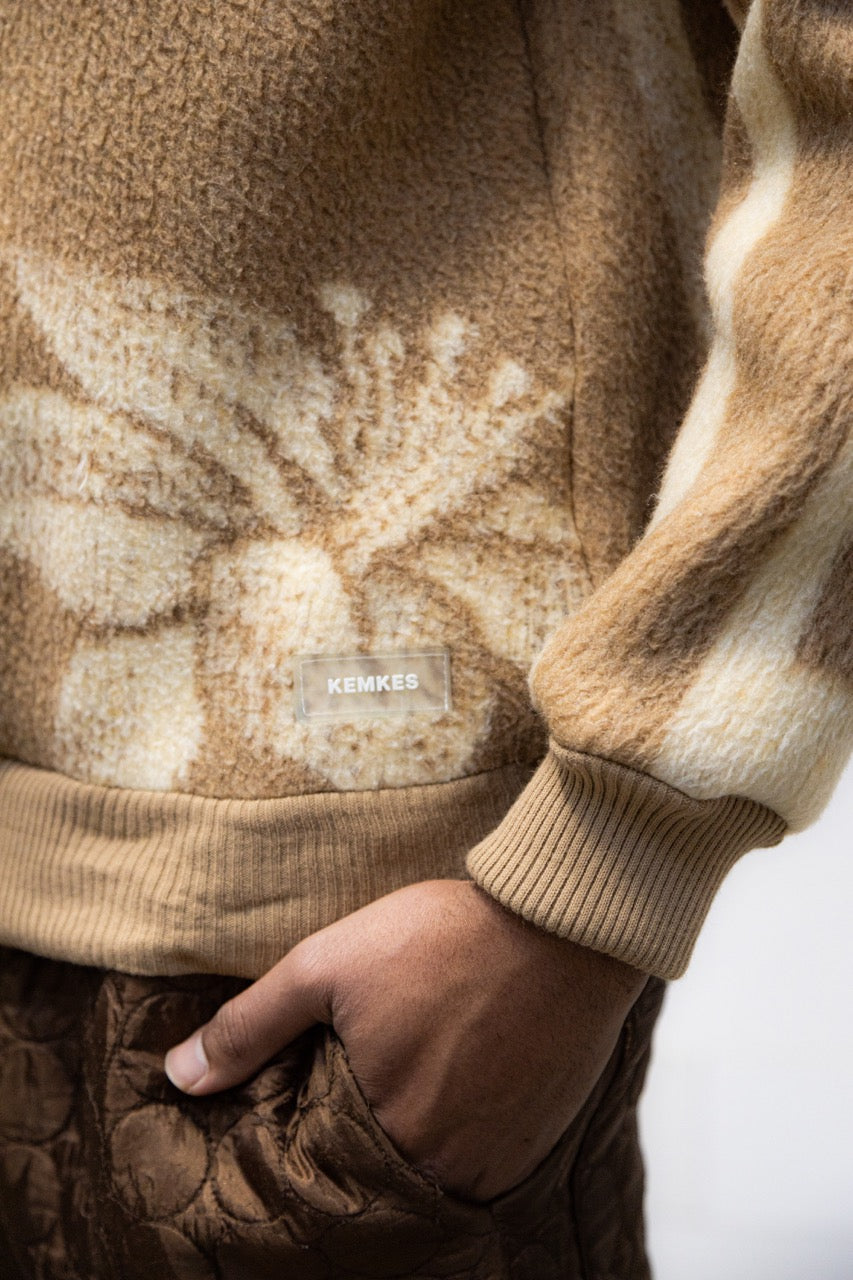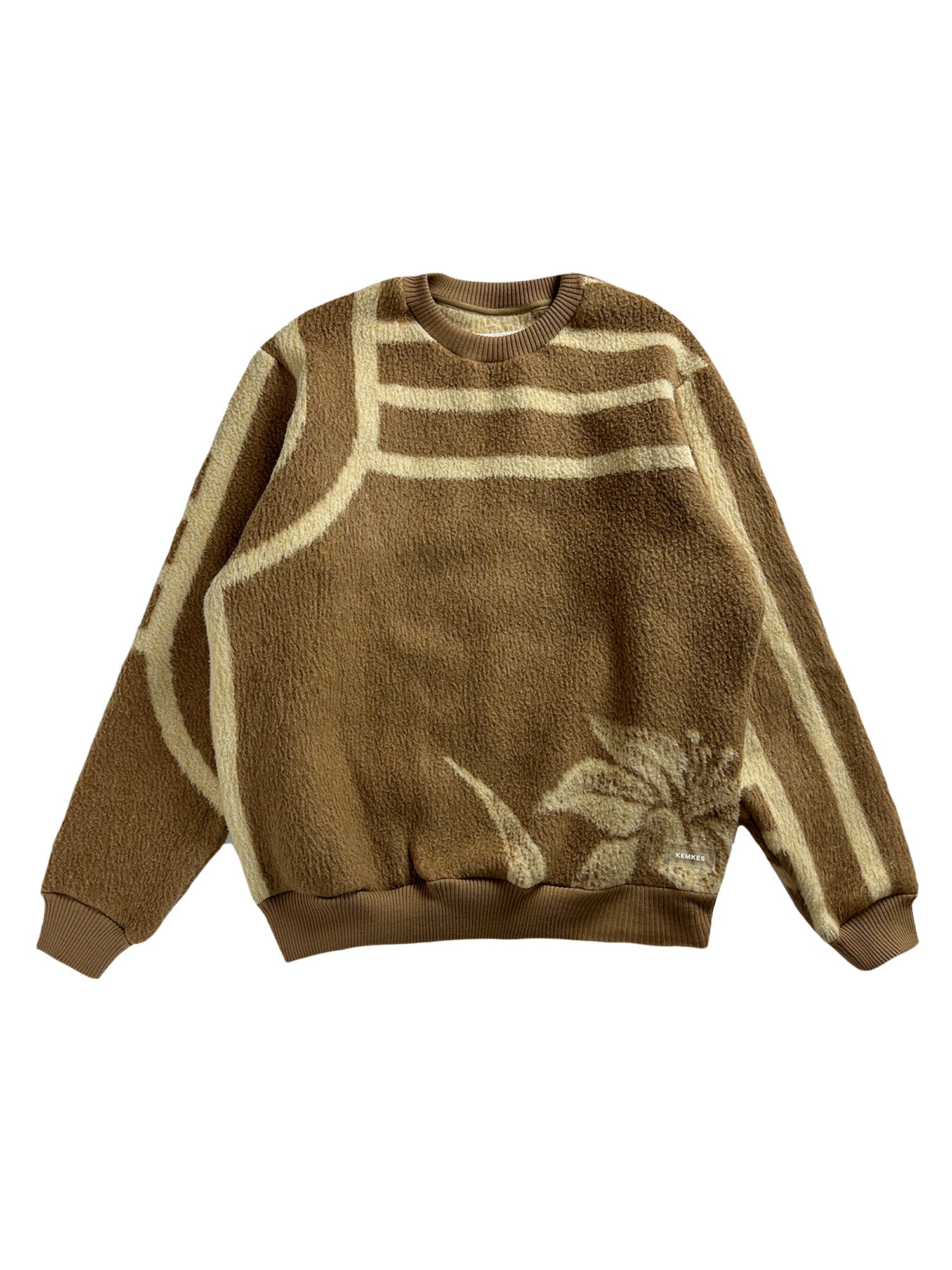 This crewneck is made from a vintage upcycled fleece blanket. It has a relaxed fit. Exact print may vary.