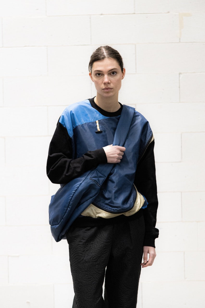 This crewneck is created by upcycling tents. It has an relaxed fit.